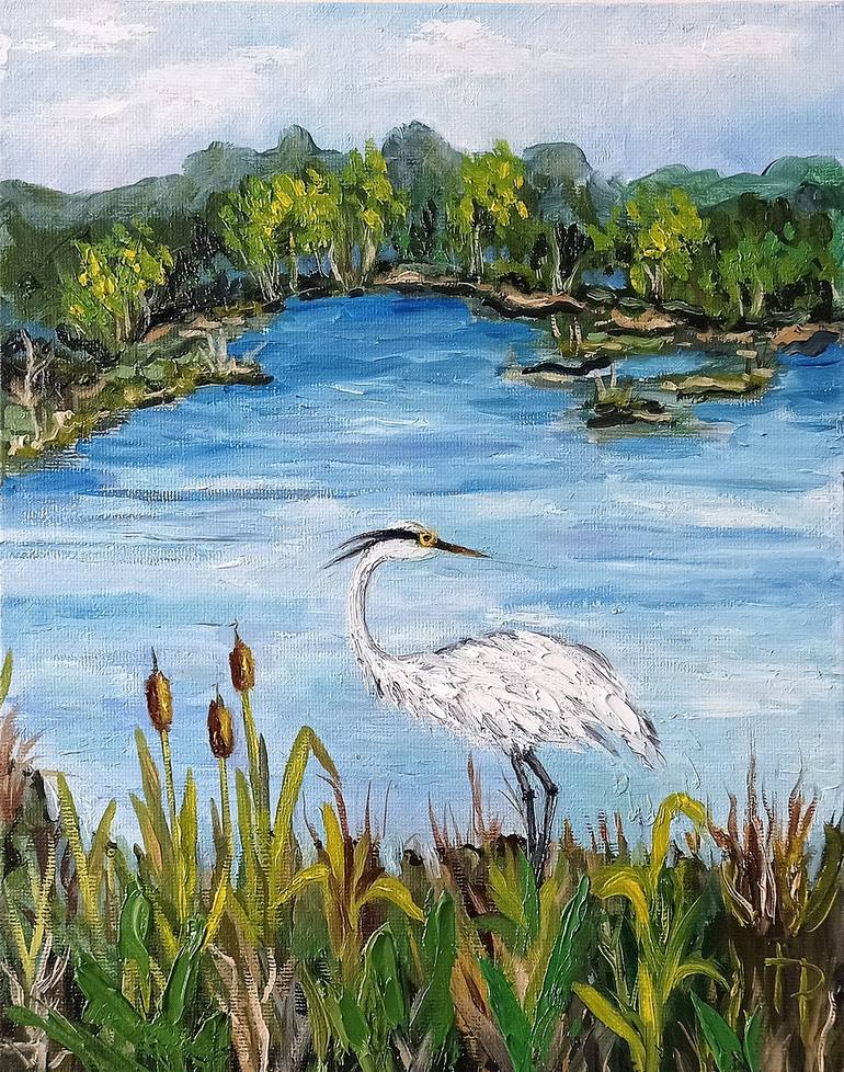 In this oil painting, I have captured the quiet elegance of a white heron standing in a misty marsh, surrounded by the soft, muted tones of nature. The heron's feathers are rendered in dense color to create a sense of depth and movement even in stillness. The bird's long neck curves gracefully, look...