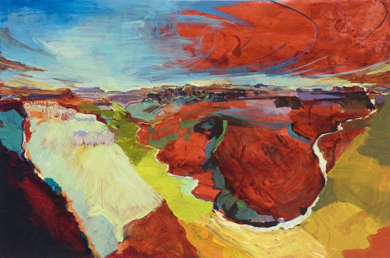 White Rocks is in northern New Mexico The view is so vast that I didn't think I could do it justice, so I painted it as though I was looking through a fish eye lens. Makes me think of how much of the world I have not seen, yet.