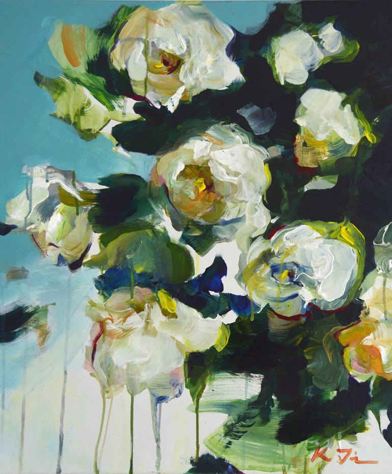 *Title: White Roses I *Size: 24 (height) x 20 (width) x 0.5 (depth) inches (Upon request I can paint similar design in other sizes and colors. Please, contact me) *Materials: Acrylic paint on wrapped cotton canvas *Style: Abstract, Modern, Contemporary *Finish: Semi-Gloss varnished for long lasting ...