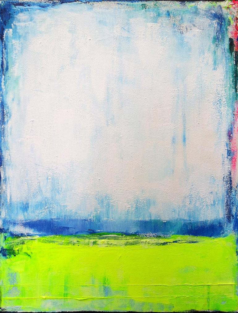 Original Neon Yellow, Yellow, Blue, White, Grey and Green abstract painting by Leon Grossmann Abstract painting. Original abstract art. 23,6 " width x 31,5 " height x 1.6" depth. (60 cm Breite x 80 cm Höhe x 4 cm Keilrahmenstärke) It was painted with professional Acrylic Colors. Paint on canvas...