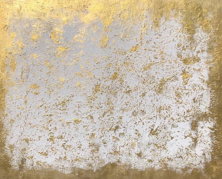 It is above all a decorative work that invites the imagination to contemplation. Gold or gilding is not referred to as a traditional color in painting. It captures and reflects the light. The white and textured background creates asperities with which the golden tonality likes to play. Although mono...