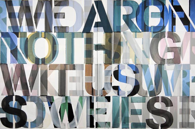 b 1971 UK Self taught artist working with many mediums but liking paint the best. Painting is just a language that I am more comfortable with, it has an honesty, it is what it is. My work is very unprocessed, direct, I don't see as I paint , just look at it sometime later, then start again or leave it alone until another time. I work with layers, building them up and scraping back, finding stuff I had forgotten about, the painting starts to get interesting, to develop its own past. The word paintings write themselves with no restraint, if I'm not sure I keep writing over, but ultimately the words, however buried, have been said.