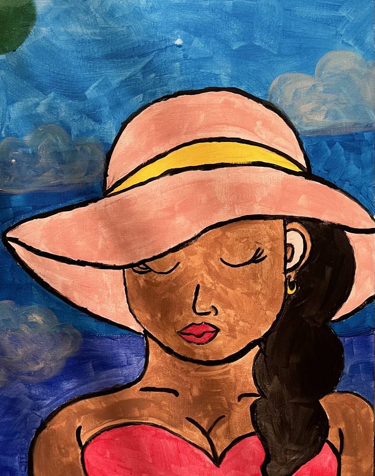 I chose to do this piece because all of us are judge for a number of reasons. I want it to come off as a who cares what other think as long as you long yourself. The women in the painting could be anywhere she wants to imagine. She knows exactly who she is internally and what her goals are.