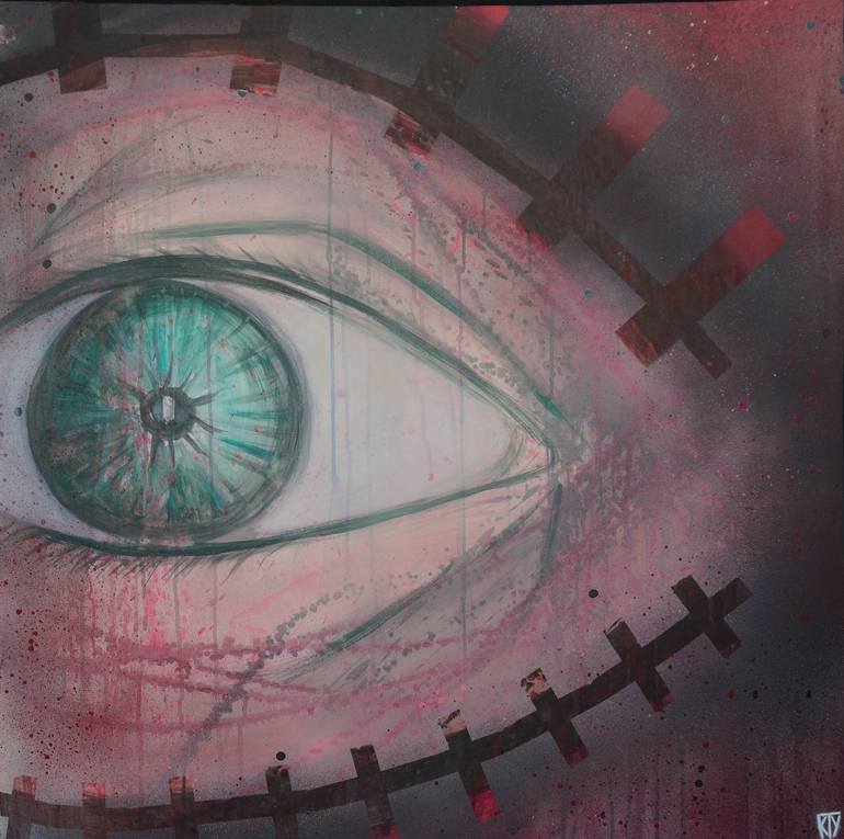 I worked about a woman face on a big paper six meters long. Then I choosed parts of it an glue it on canvas for this Eye wide-eyed. It evoques surprise, strangeness, torture. I chosed this style because it corresponds of my feeling.
