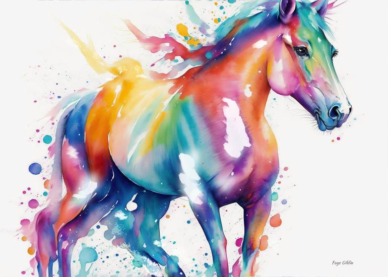 Wild Horse Gallop - Nothing is more powerful and dynamic than a horse that is freely being a horse. Whether it is wild or out of the stable in the field. A beautiful sight. Splash and spray watercolour abstract styling. A series of animal prints in this style. Colourful and vibrant.