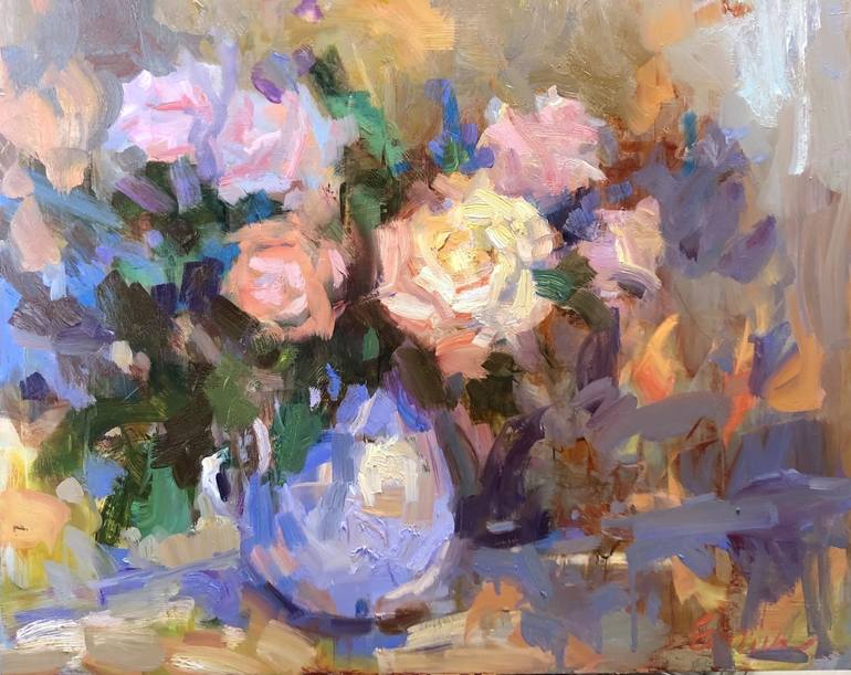 100% original, hand painted fine art, one-of-a-kind by Emiliya Lane Size 16x20 Colorful Roses Still Life "Wild Roses" painting would be a great addition to your original oil paintings collection. Original painting, created on aluminum board. On the front side of the canvas wall art - the author's...