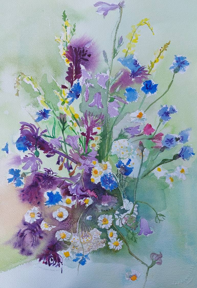 I am often inspired from nature, and flowers are very attractive subject for me. This is a summer bouquet from wild flowers and camomile. The time I painted was really pleasant moment. It will be signed.