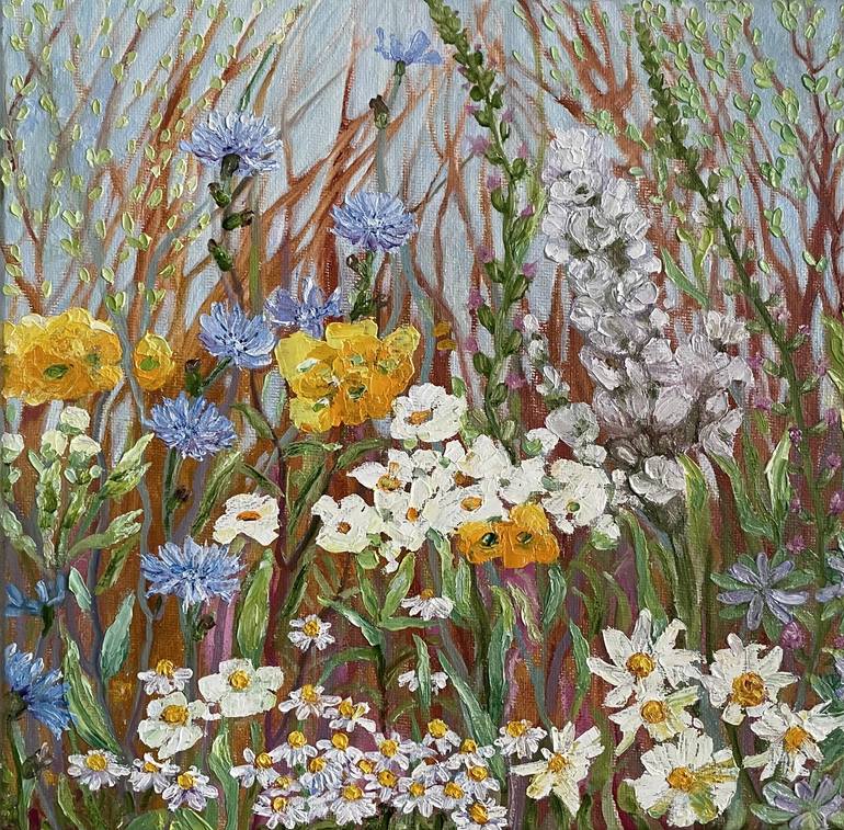 Wildflower landscape oil painting, depicting a beautiful nature scene. My hope is that my art provides a moment of peace and delight, transporting you to the beauty of the natural world.
