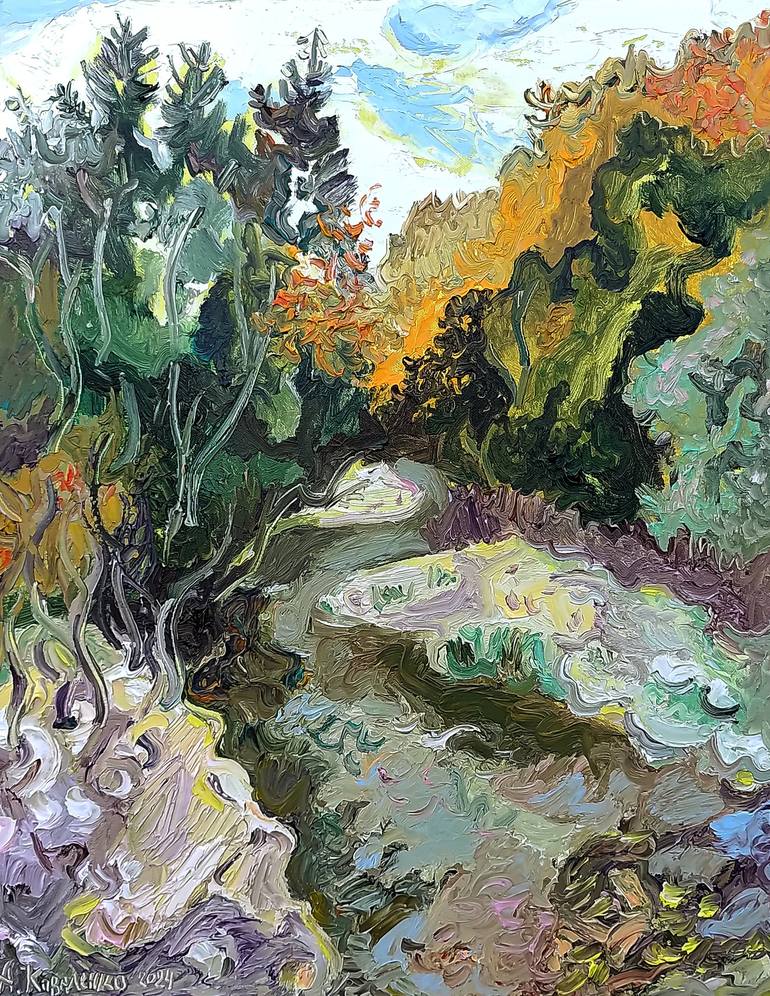 This painting is painted thickly, with oil paints, in a bold and expressive manner. It is created for those who love and appreciate professional painting and need something unique. This landscape is painted by the famous Ukrainian artist Andrey Kovalenko, from Odessa. The painting carries a lot of p...
