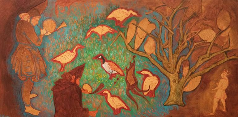 Growing up, our home was always filled with paintings. Trees and plants have always been some of my favorite subjects to draw, though I didn't start drawing figures until college. My style leans toward the whimsical. With my traditional training, I learned how to take an idea that interests me and develop it from the initial sketch to choosing the right medium. After graduating, my family and I moved to Portland, Oregon, in 2014, where I’ve been inspired by the area's natural beauty. Recently, I attended local festivals, where I encountered people who reminded me of Renaissance musicians, which became the focus of several of my recent projects.
