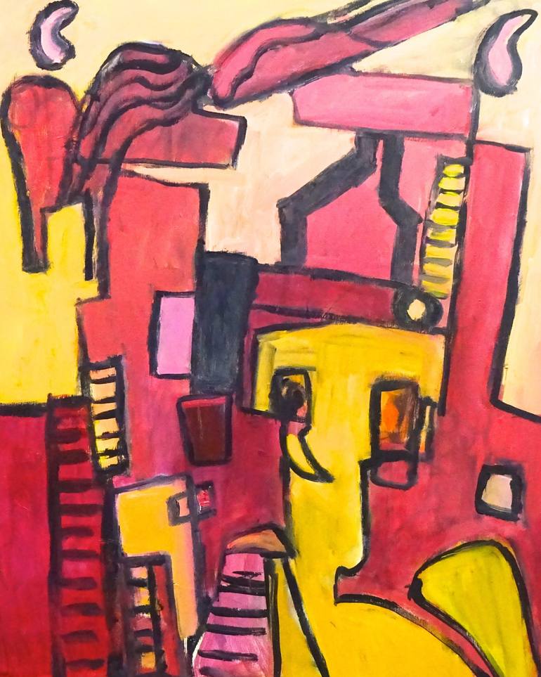 - Artist statement : 'In the labyrinth of my thoughts are many roads leading to the unknown' many roads are leading to the unknown - around every corner a surprise - fata morganas unprecedented views - paintings designed according to laws of their own. - She lives and works in Bilthoven, the Netherlands. In the 90's, she started painting by following various courses in this area in Amsterdam, also in etching, modeling and screen printing. In recent years she has focused on painting with acrylic paint. - My style of painting is inspired by the abstract-expressionism. I admire their sense of freedom of expression. I am also fascinated by the alchemy of colour. - Her art images are created in her head and in her mind. Her fascination with images that are not possible or not correct representations of reality, cuts across the idiom of the art of Surrealism. The style of her paintings can best be described as lyrical-abstract. Usually she works in several thin layers over each other. Each layer provides inspiration for the next, with new ideas. The different layers and colors gives the acrylic paint depth and character. My paintings find their shape during the making of them. Starting point is a certain image I have in mind, or a distinct form or colour. My way of working is spontaneous, a process of improvisation. The painting is a work of action, until a stage is reached wherein every form and colour is for me at the right place. In this way the paintings are the reproduction of internal images : 'landscapes of the mind'. My style is abstract-figurative, with often the human form as a subject. Favorite painters : Picasso, Kandinsky, de Chirico, Miro, Franz Marc. - As regards the meaning of a work: her paintings are like music, there are no words needed for its interpretation. Each painting tells its own story, and those who look at it may experience it in his own way, can give his own meaning to it. - underneath colour and shape there are laws a painting must fulfill an invisible framework proportions movement limitations one must be able to enter the painting and to leave it the arrangement of the forms is leading the phantasy via the unknown to the inner life colour and form forged together with the laws shaped by the artist