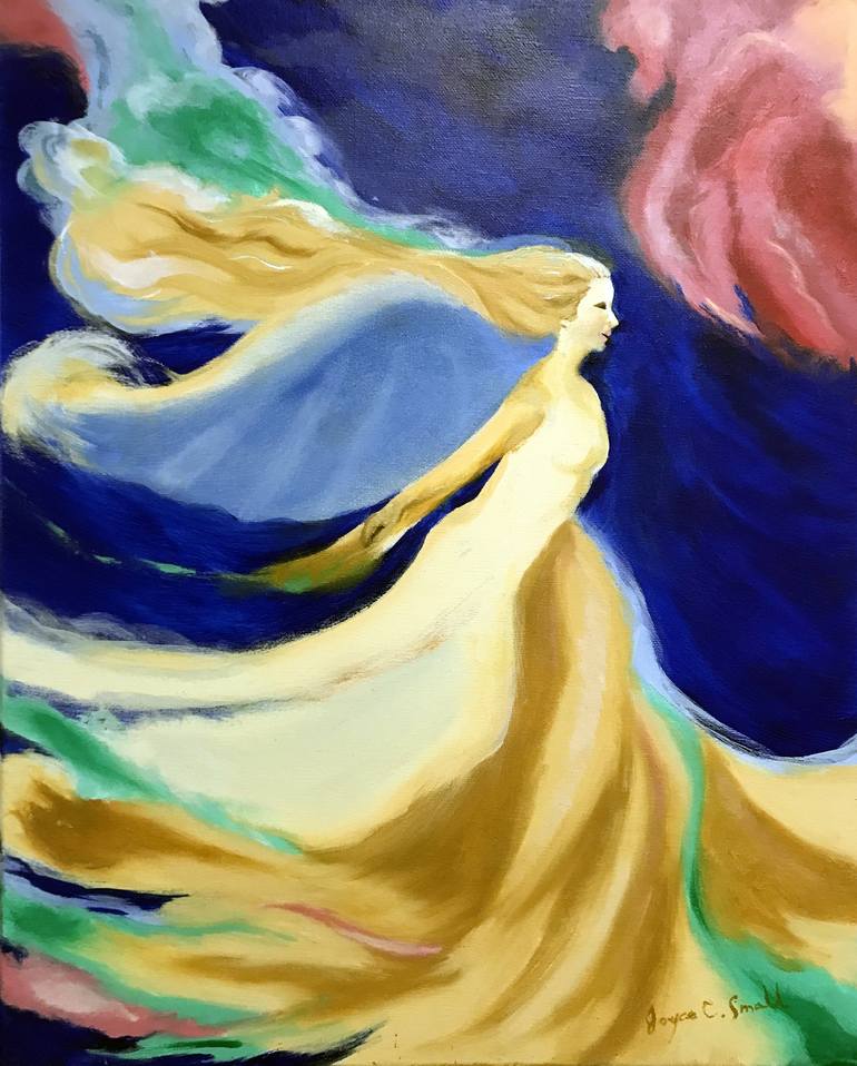 Joyce was interested in drawing since childhood, but didn't study art until college, when she took a few courses. she thought she had no talent when compared to the more advanced students, and gave up, earning a BA in French literature. After graduation, she went to work for Pan American World Airways, and eventually started her own travel agency, in Los Altos, California. Many years later she went to a Dale Chihuly glass exhibit, and was in complete awe at the beauty of his work. In 1997 she and her husband moved to Washington State to be near their grandchildren. This provided an opportunity to take glassblowing lessons, as she had never forgotten the colors and shapes of Chihuly’s glass. She didn't let the fact that she was 57 stop her from following her dream. After two years of hard work, she switched to oil painting. 25 years later and after much instruction, she still loves painting in oils. While living on Whidbey Island she took part in several exhibits, and won first place for a portrait in the Island County Fair. She and her husband, Jack, moved to Panama when they retired, in 2010. It is a beautiful country and they loved the culture. She joined the local art society and exhibited in juried shows, as well as a number of private shows, including a gallery at the Sheraton Hotel in Panama City. Although they enjoyed their time there, they decided to return to the United States to be closer to their children, when Jack became seriously ill. Her focus was to take care of him, so she had little time to paint for the next four years. Alone now, she paints with a passion. Her work is evolving. " I see humanity as living in two worlds at the same time - the world of truth, and the world of illusion. Grace,is the state of love, which I achieve through forgiveness, and by releasing all judgement. My painting is inspired by Spirit. I meditate every morning and often see pictures in my mind that I paint. Now, I like to paint abstracts or expressionist paintings, using color and form to evoke a heart felt resonse from my viewers". Recent research is finding that people respond to color. An example is the color black, which is very strong, associated in western culture with evil and anger. Cheerful colors can be yellow, or pink, and blue or lavender which might evoke a sense of tranquility. Chagall said: "Color is all. When color is right, form is right. Color is everything, color is vibration like music; everything is vibration".