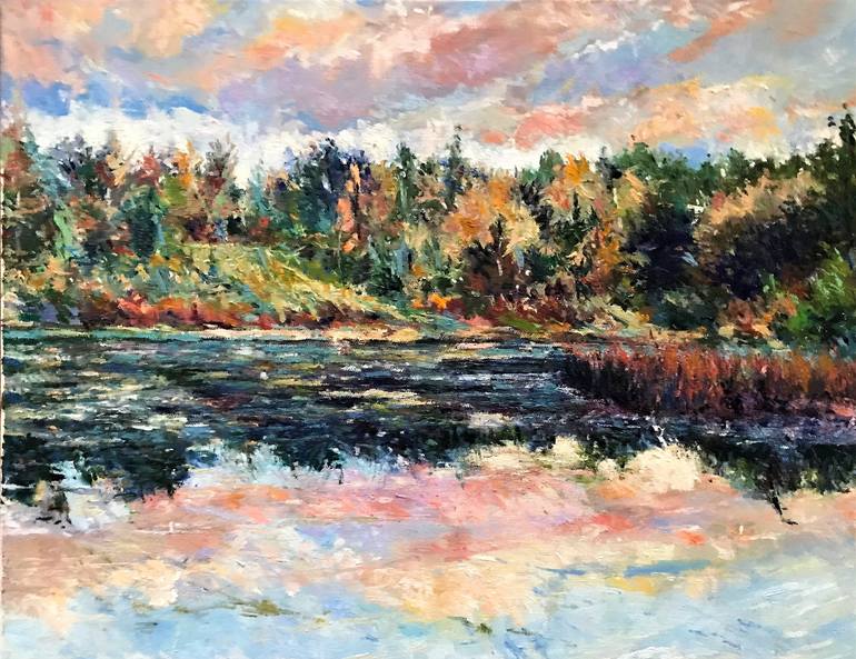 “Windy Fall Sunny Lake Park Aurora Ohio” oil on canvas 2021 14x18