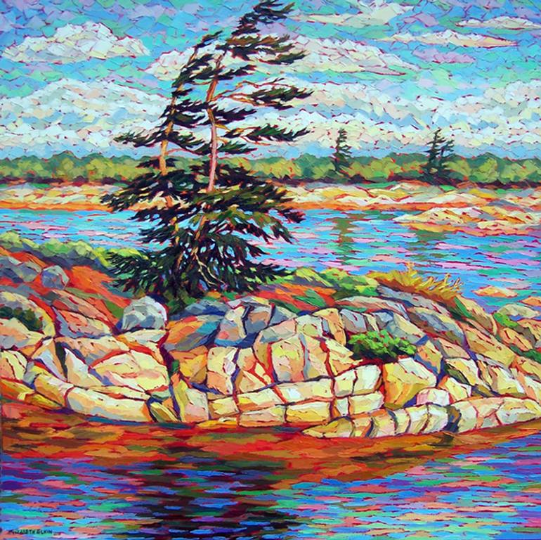 Windy day is original oil painting done after trip to Northern Ontario. The thick texture of paint applied with palette knife. The painting comes ready to hang. The colors may look a little bit different depending on the computer. Elizabeth Elkin is a renowned professional artist with an internat...