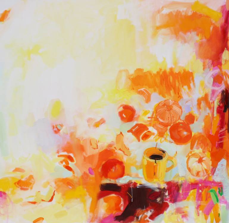 Morning. Coffee and fruits, sunlight and wind in hair.