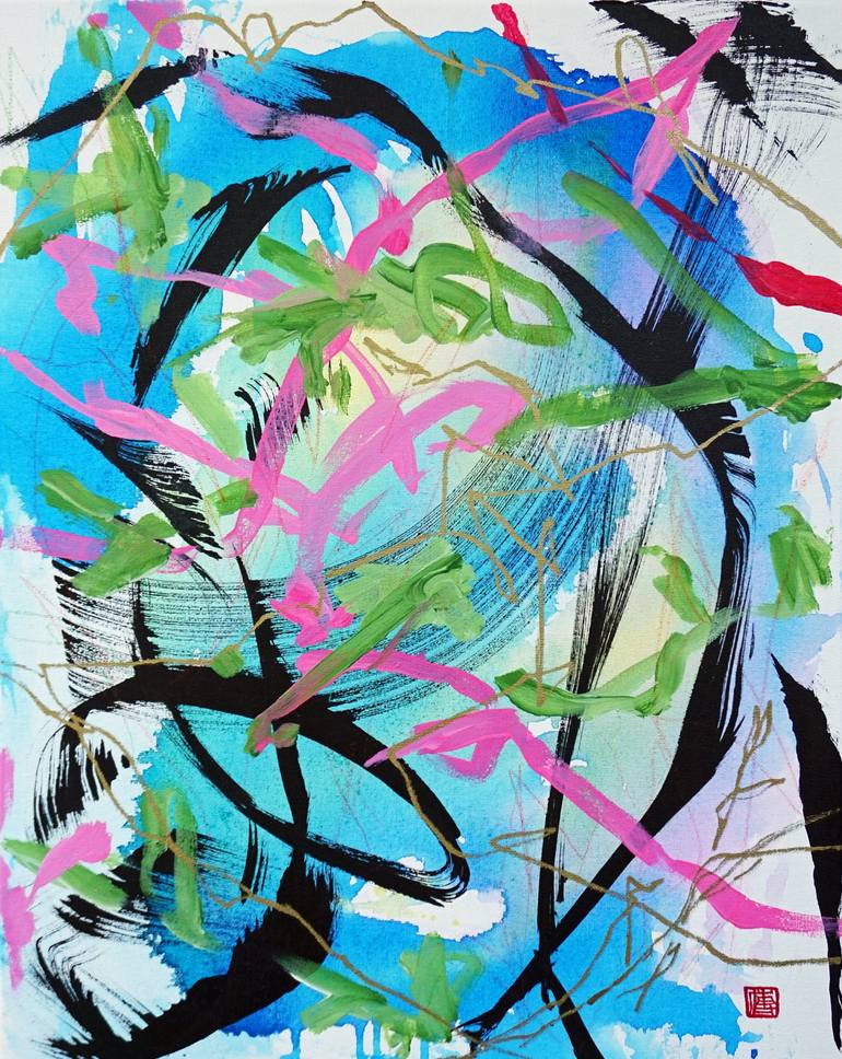 Acrylic, Markers on Stretched Canvas Protected with Professional Varnish Signed on the verso Unframed "Hope & Recovery" series is created during the time of political unrest and my relocation from Hong Kong back to the US under the theme of "Music in Ink". It is inspired by nature, poetry an...