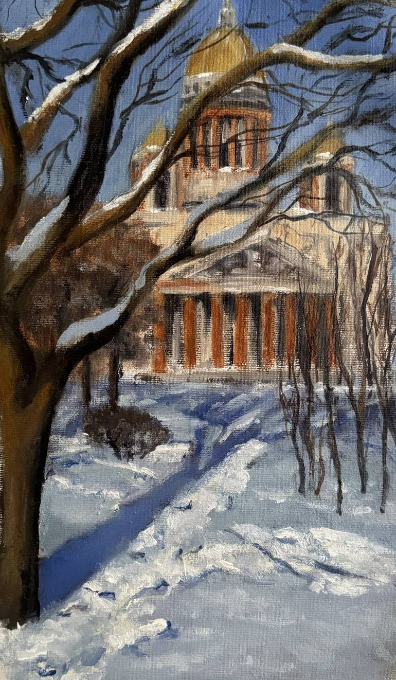 Oil painting on canvas, Saint Petersburg, Winter. The painting is still drying.