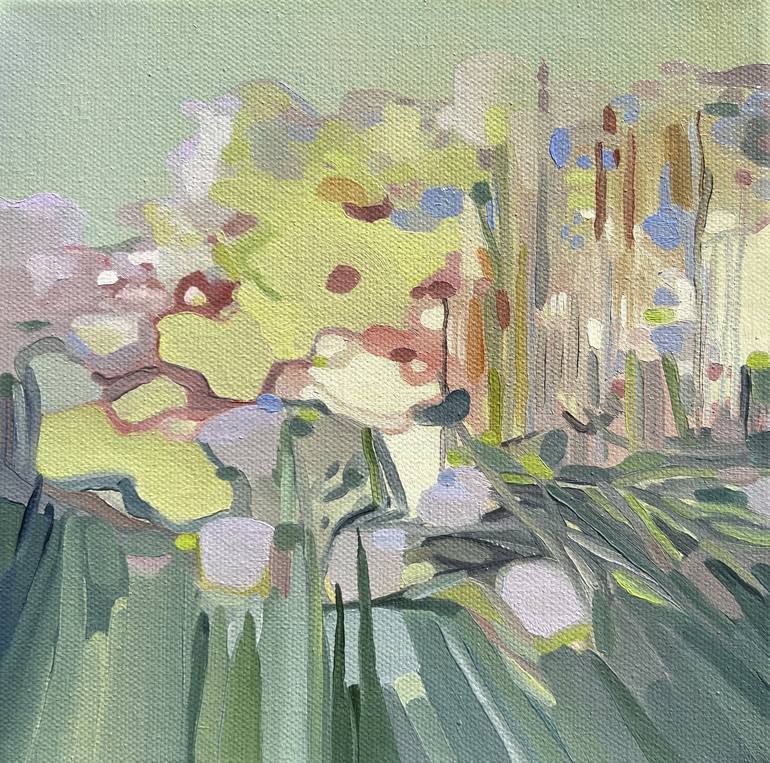The process of just getting in the studio and painting led me to paint this new work featuring an abstracted winter landscape. Not knowing where a painting will end or what I’m painting allows me to find an image as I’m painting making it overall more expressive.