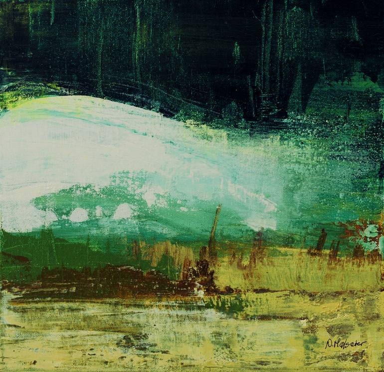 A semi abstract landscape in the transition between autumn and winter. Dark green painted sides, no frame needed.
