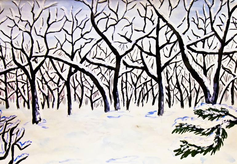 Painting, gouache, forest in winter with branches in snow. All pictures with winter landscapes can be found in collection "Christmas and winter". All my pictures are unique and exist only in one example, I never do exact copies. Pictures are different either in drawing, either in material. Buyin...