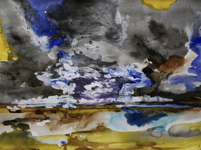 14 paintings - abstract landscapes with a photo as starting point - 61x43 cm 2021 - pigments, ink, sumi-e on paper. My inspiration is the photo (from a calendar) - the rest is my own imagination and the imagination of the viewer.