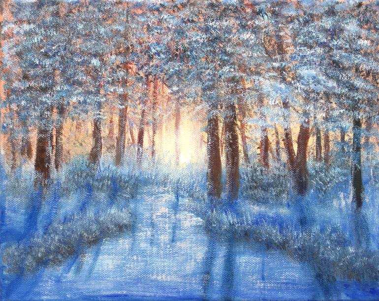 Winter landscape, winter sunset, snow and winter forest small oil painting 9"x12 on canvas- is a landscape painting on a cotton canvas, it is painted using high quality oil colors, no frame required, ready to hang. The sides of the canvas have been painted and it´s a continuation of the painting. Th...
