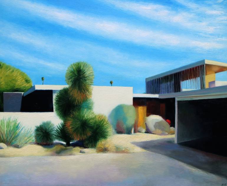 "Winter sun" 30" X 36" oil/canvas 2019. This painting was inspired by mid-century architecture of Palm Springs.