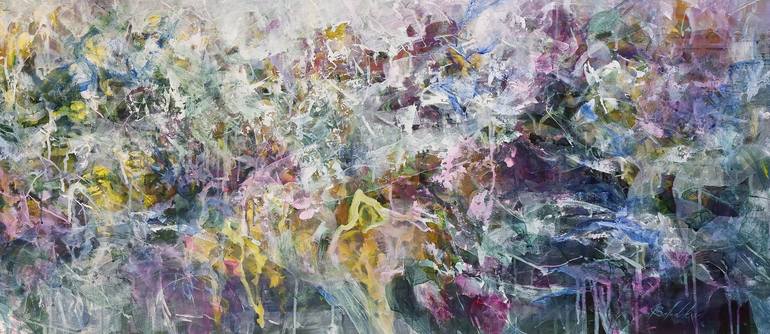 Intertwined branches, hanging clusters of flowers, under the rays of the shining sun, this is what inspired me when creating this painting. An abstract garden full of greenery and flowers, just as in the garden there is a riot of leaves and greenery, so the strokes of paint on the canvas intertwine....