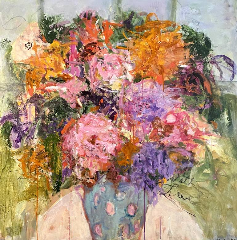My love for gardens , flowers and painting inspired this painting ...full of love, color, drama, joy & happiness all rolled up in one fabulous painting!!!! Perfect for any room in the house!!!!