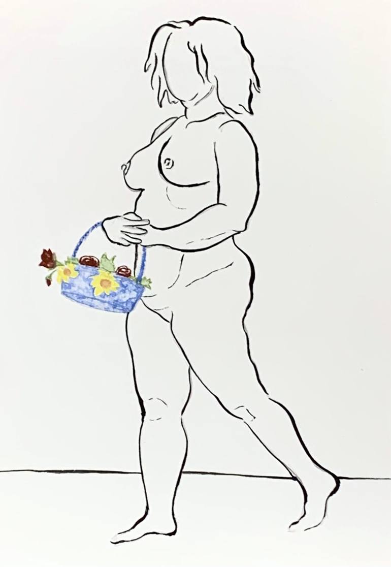This is a figure study with an emphasis on line. The study is egg tempera on watercolor paper,