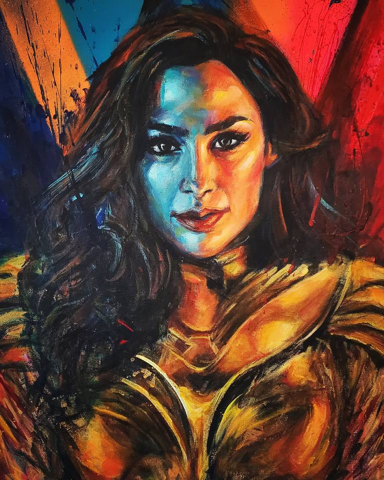 This is a painting of Wonder Woman. I got inspired to create this piece after watching WW84 movie. I'm amazed with her strength, beauty, and compassion. I used spray paint for a background, and acrylic and marker to create Wonder Woman. Thank you!
