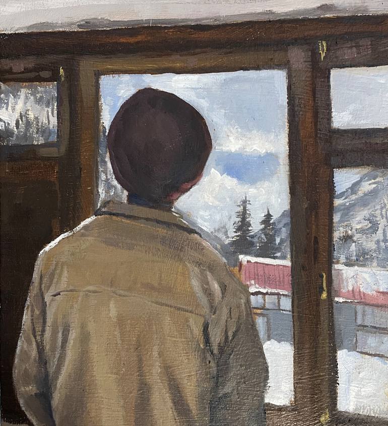 This a portrait of me looking out of the window. I made this the last winter during my trip to Manali.