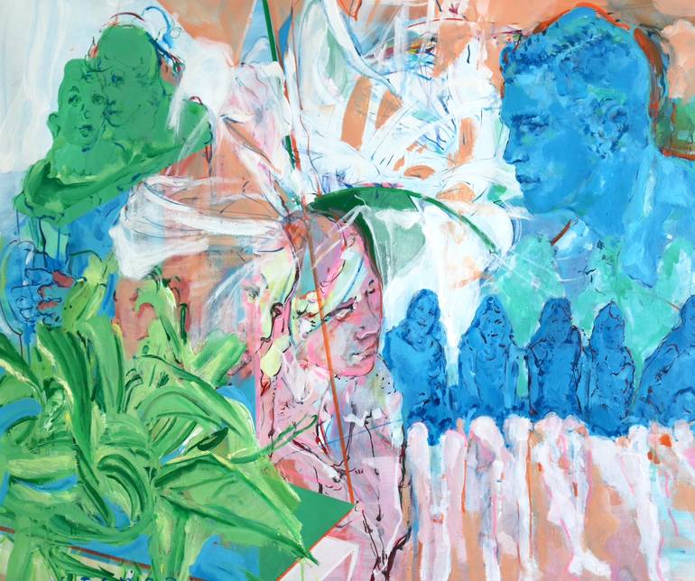 This fluid composition is integral, bridging the historical essence of painting with contemporary interpretation. My works are a testament to my upbringing, imagination, and cultural amalgamation, engaging in a dialogue with the tangible medium of painting. Within the canvas, figures dance amidst sp...