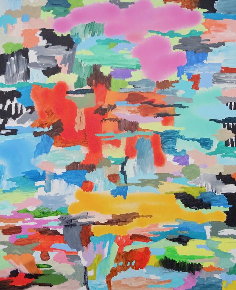 Wonderland. Acrylic & spray paint on canvas 2025. Signed by Andy Shaw on reverse of artwork.