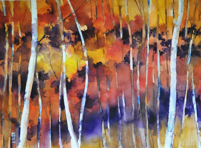I have always been fascinated by the colors of autumn, so when I passed in front of the poplar wood near my home, with their vibrant colors in the afternoon breeze, I could not help but photograph it with my iPhone and once I returned to my studio, I redrafted the image trying to release all the ene...
