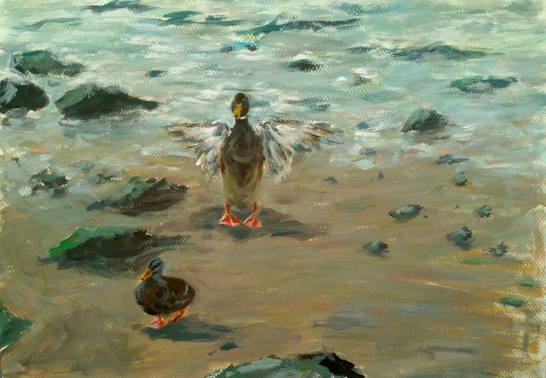 My photos of the paintings are taken under neon light, thus colors may be slightly different in other lights!