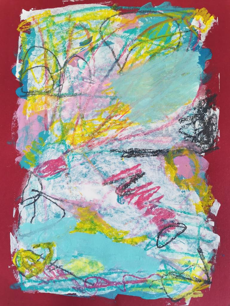 My emotions and thoughts on paper. Do you feel the energy? What does this artwork say to you? Acrylic paint and oil pastels on deep red art paper (270g/m2) Shipped in a tube, unframed. All my artworks are signed (mostly on the back) and come with an authenticity certificate.