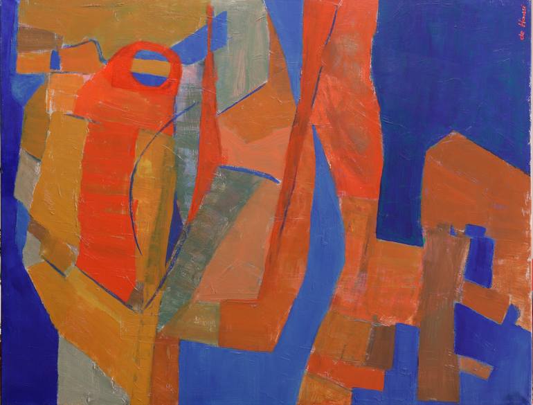 "World Water Day" is an original abstract painting, inspired by a trip to Milano, that subtly echoes the dynamism of futurist art. Created with acrylic on canvas, the artist completed this piece on World Water Day, infusing it with rich ultramarine hues. The geometric forms, rendered in earthy reds...