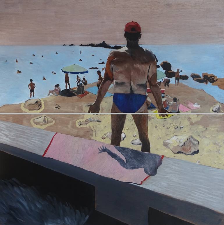 A Russian man tries to ensure an even tan at the beach in Balchik on the Black Sea.