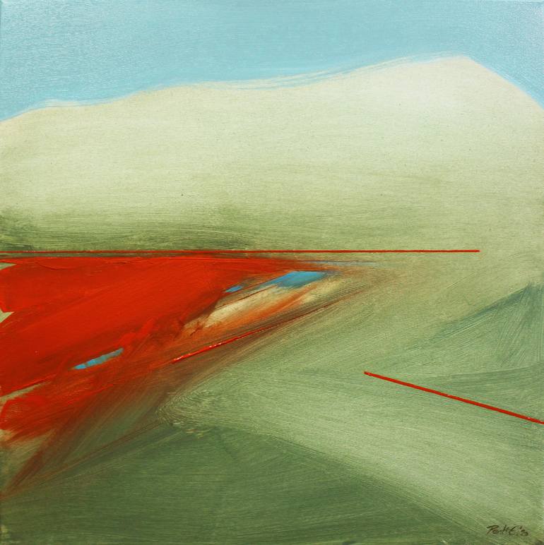 Painting: Oil on Canvas. Although my work is highly abstracted, we can discover worlds in the details – the sun, the moon, the water, skies, dust in the clouds, windows on houses. However, the topic is of a secondary importance to me, while I paint I mostly deal with the composition and creating th...