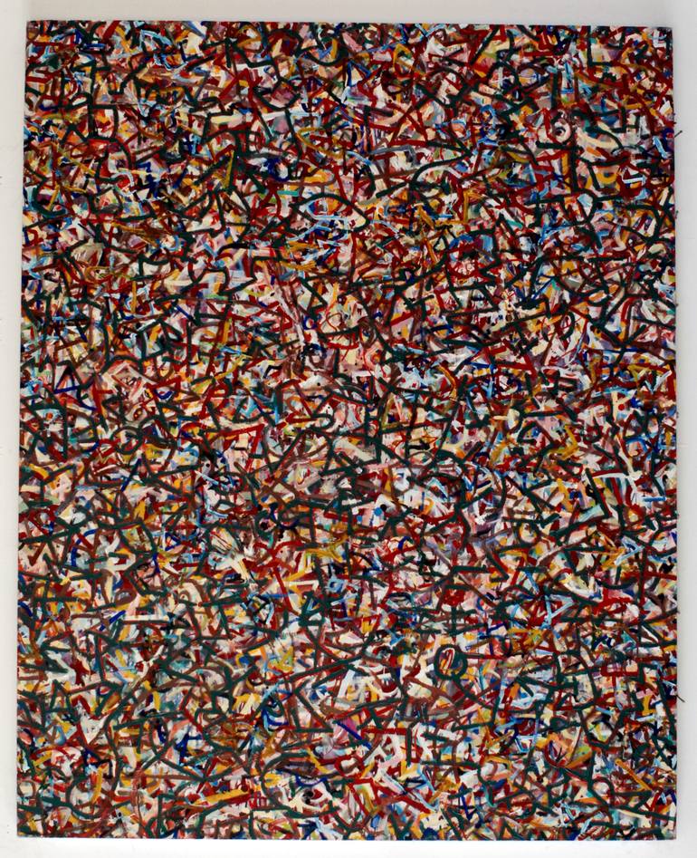 In this painting I made the elements more dense and compacted still. I managed to fullfil the compositional goals described above, and also used these goals to achieve a description of the religious experiences I was undergoing at the time, in which the world became a totalizing thickness - as it do...