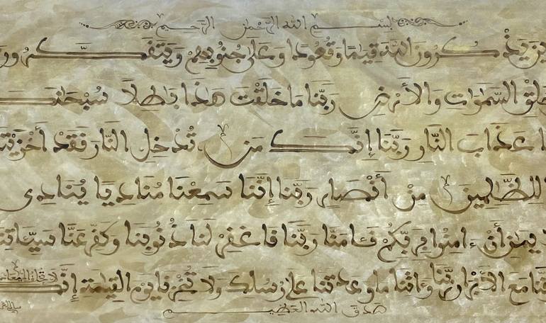 By Sami Gharbi - Tunisia Acrylic on canvas خط عربي أندلسي Holy Quran 3:191 ------------------ الَّذِينَ يَذْكُرُونَ اللَّهَ قِيَامًا وَقُعُودًا وَعَلَىٰ جُنُوبِهِمْ وَيَتَفَكَّرُونَ فِي خَلْقِ السَّمَاوَاتِ وَالْأَرْضِ رَبَّنَا مَا خَلَقْتَ هَٰذَا بَاطِلًا سُبْحَانَكَ فَقِنَا عَذَابَ النَّارِ Who...