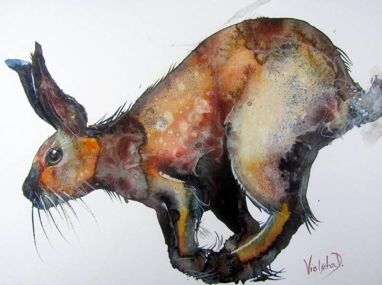 This is an original watercolor painting of a rabbit in a hurry, running to get all rabbit's things done before Easter. It is painted on Hahnemühle 425 gsm (g/m2) natural white, high quality watercolour paper. Hahnemühle is the oldest German papermaker with a proven reputation for quality.