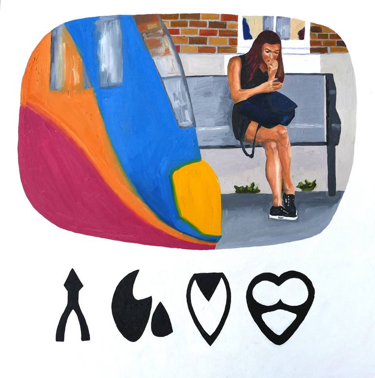 I usually work in series. This painting is from my latest series SUBTITLED. Each painting consists of a figurative section and the title of the painting rendered in pictographs. As we attempt to perceive what we are looking at through language, is it possible that we actually shape the words so that...