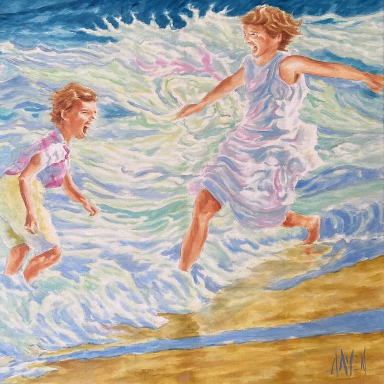 This boy was so amped up about being in the surf, it was fun just watching him. My goal was to convey some of his excitement, as well as that of his big sister.