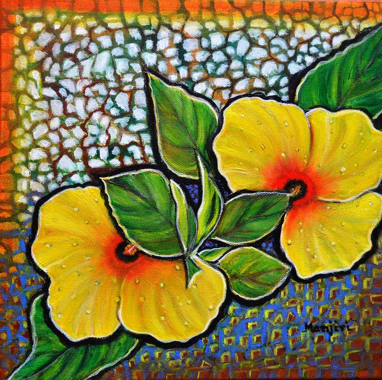 This absolutely gorgeous and bright painting is inspired by a picture of the hibiscus flowers from a friend's potted garden. I couldn't wait to paint these glorious flowers and this is my humble attempt to capture them on canvas. It will look fabulous in any decor. Medium :Acrylic on Canvas Size:1...