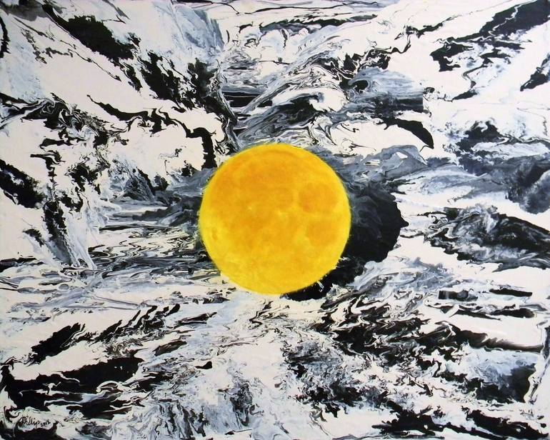 Yellow Moon is the third in a series a series of abstract expressive full moon meditative paintings. They are meant to bring the viewer to places in the imagination, and hopefully open areas of the sub-conscience mind which might aid in personal growth and discovery. It is also a decorative paintin...