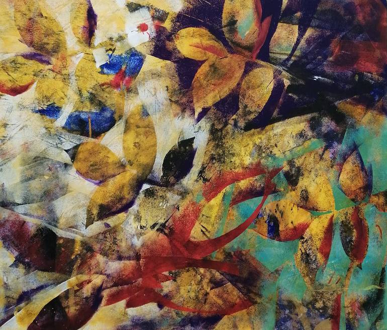 Yellow Original Oil Painting Abstract Tree Purple Red Green White Blue Expresionism Living Room Leaves Multy Colored Picture Nice Painting For Living Room Or Bedroom Or Office It Was Inspired From Worm Summer It Brings To your Heart Warmness And That Feeling Of Peace
