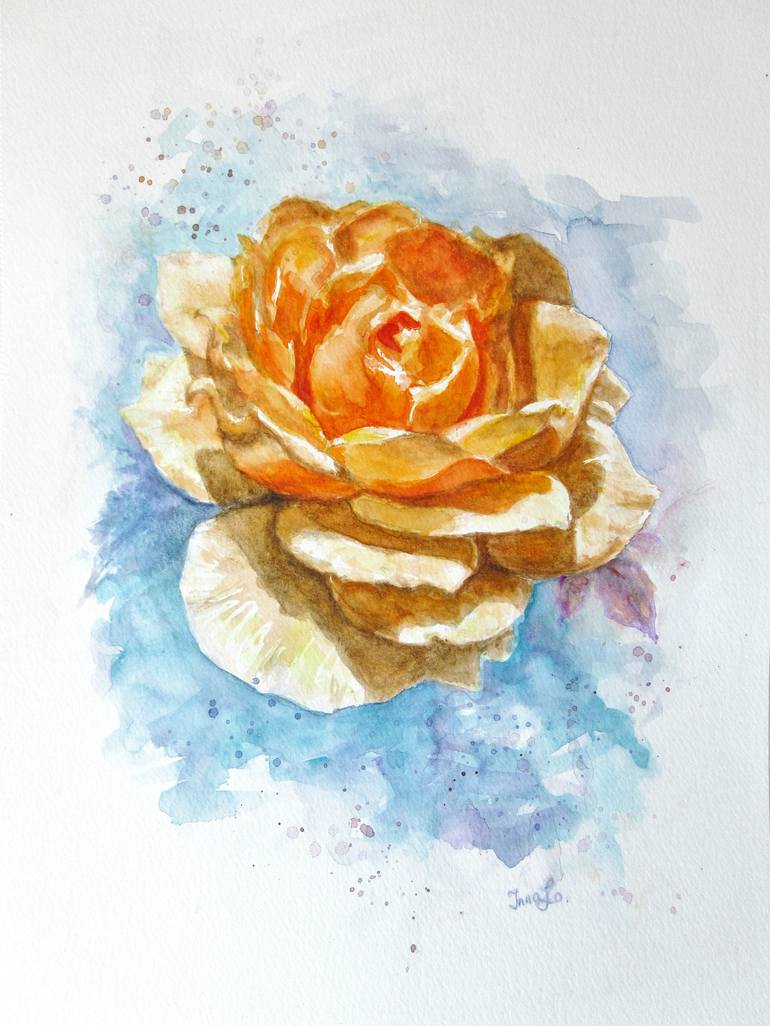 Original watercolor painting of the Yellow Rose Flower on acid free heavy duty watercolor paper 300 g./m. The beautiful rose was grown at my garden last summer.