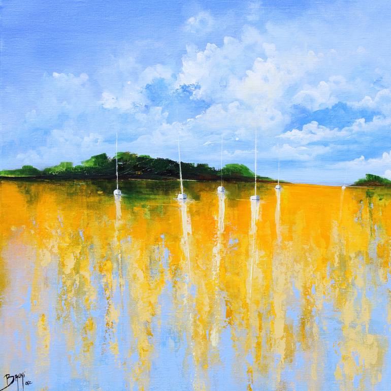 In this painting, I have captured the vibrant essence of light and its reflection on water. My expressionism seeks to evoke serenity and contemplation, while inviting deep introspection. It is a figurative celebration of nature, where the sky and the lagoon come together in a symphony of luminous ye...